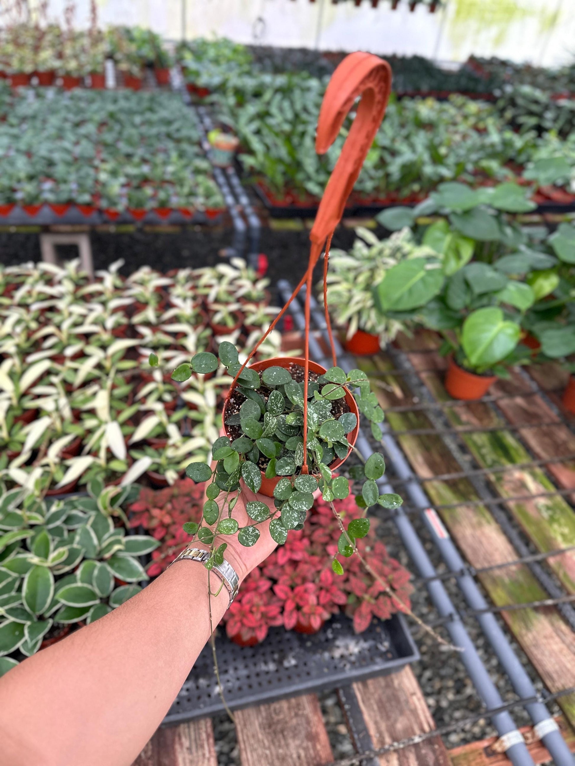 The Hoya Mathilde prefers bright, indirect sunlight and watering when most of the soil becomes dry. This plant will grow extra long trailing vines and under the right conditions, they can bloom and produce flowers! **The last picture does not represent all the plants you receive, but instead shows a progression of how your Hoya Mathilde will grow. Plant may come in 4” pot subject to plant size :)